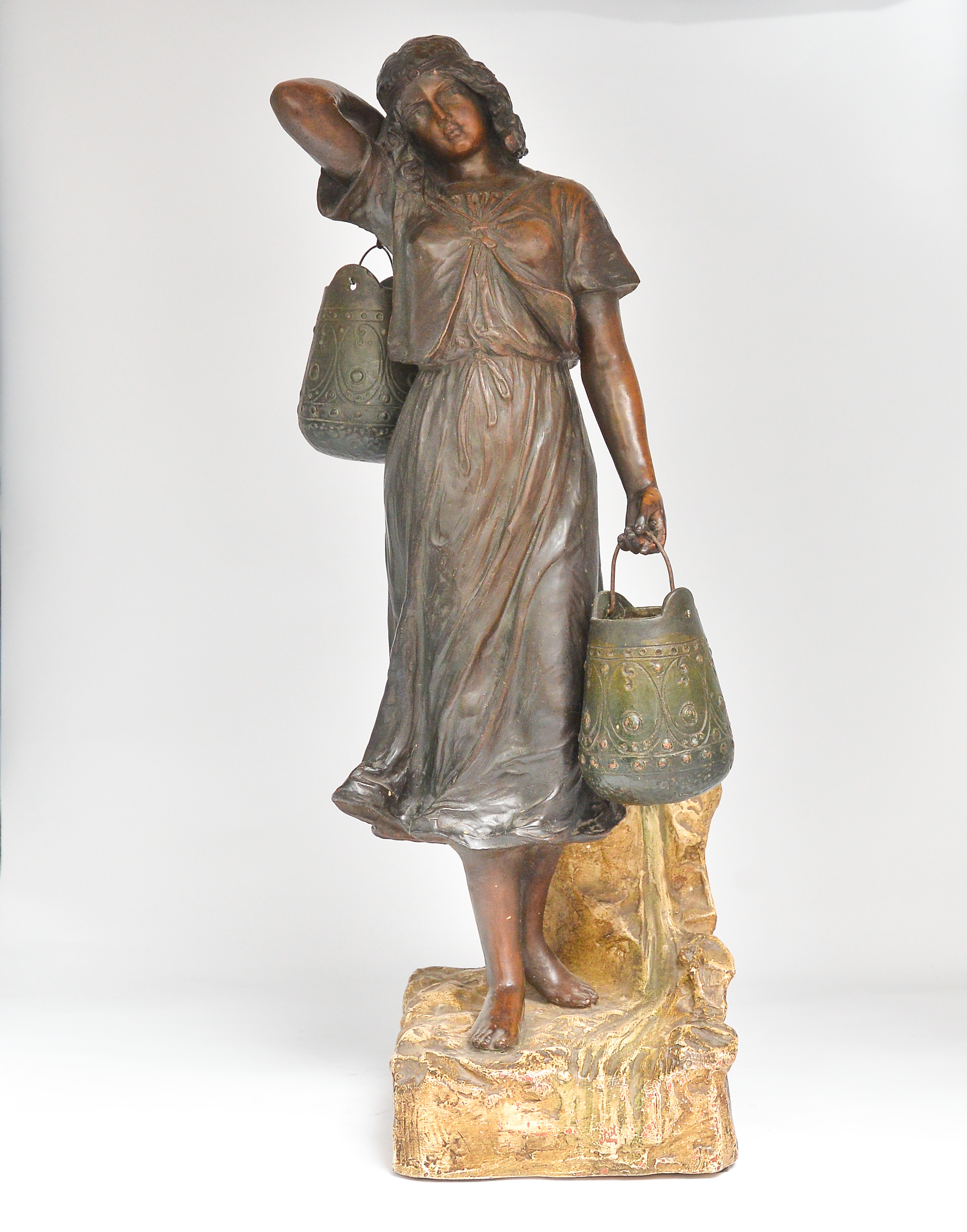 Portatrice d'acqua, scultura in terracotta risalente ai primi del '900. Alla base timbro della Manifattura Lazzaro di Treviso