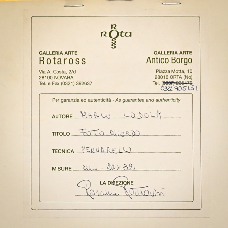 Firmato in basso a destra, risalente agli anni '80, al retro presenta etichetta di Galleria Arte Rotaross e Galleria Arte Antico Borgo. Autentica dell'artista su foto.