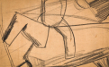 Mario Sironi - Fantino a cavallo - opera futurista del 1914, matita su carta intelata, firmata in basso a destra. Al retro data, titolo e firma di Willi Macchiati.