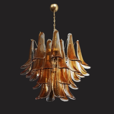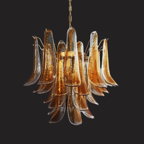 Fantastico lampadario con petali di vetro (trasparente con macchia d'ambra).