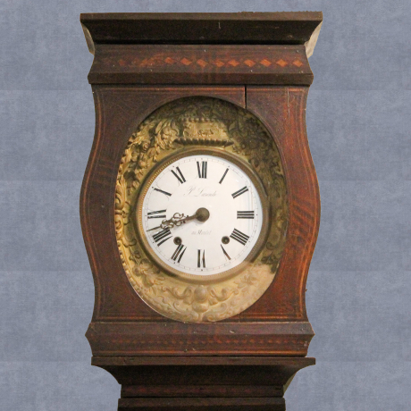 Splendido Orologio pendolo a torre in legno di pino, finemente decorato a finto legno con decori floreali.