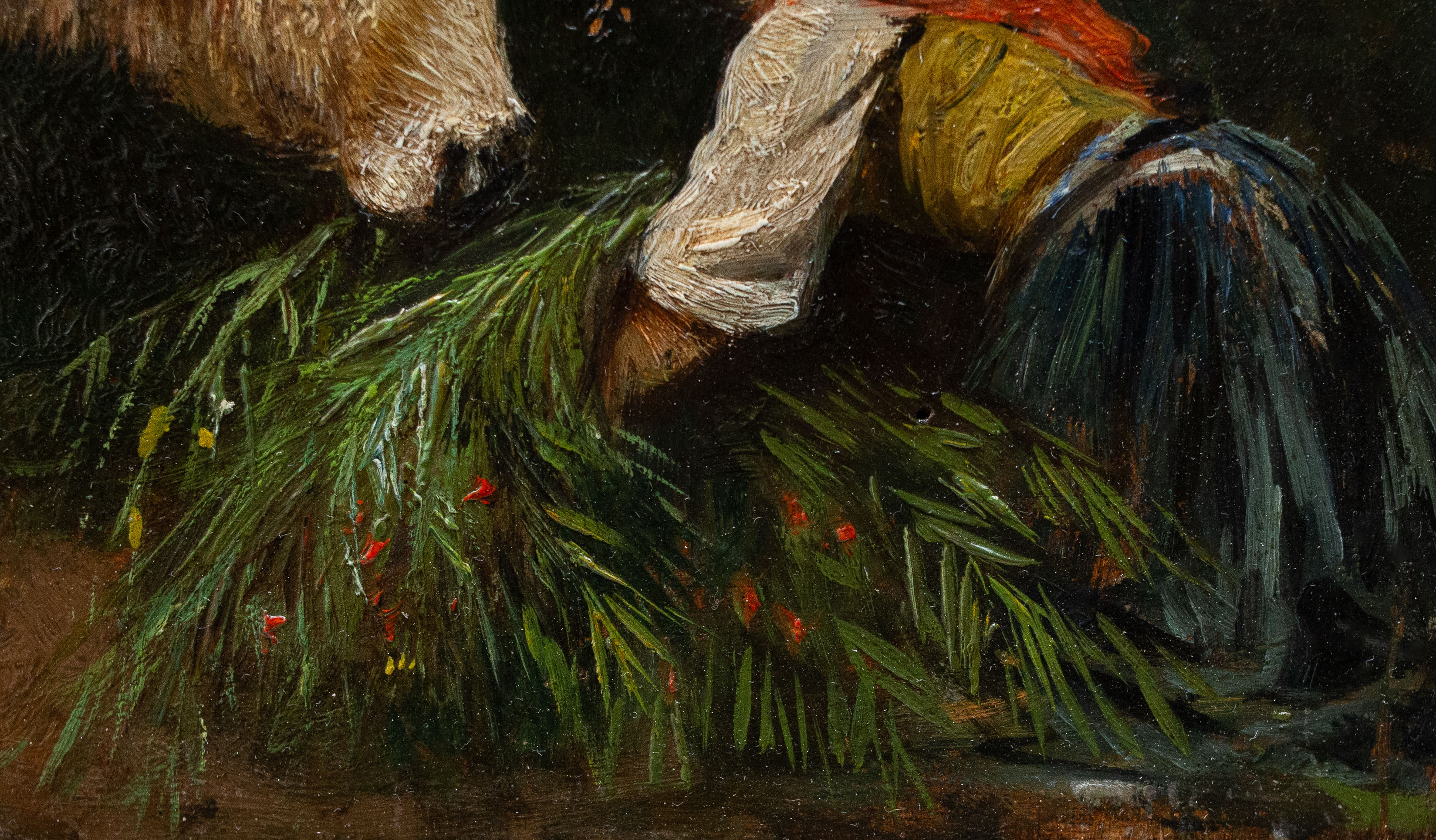 I dettagli del pelo del vitellino sono dati da tocchi fermi e precisi, mentre i vari colori sono pennellati con massima cura e maestria