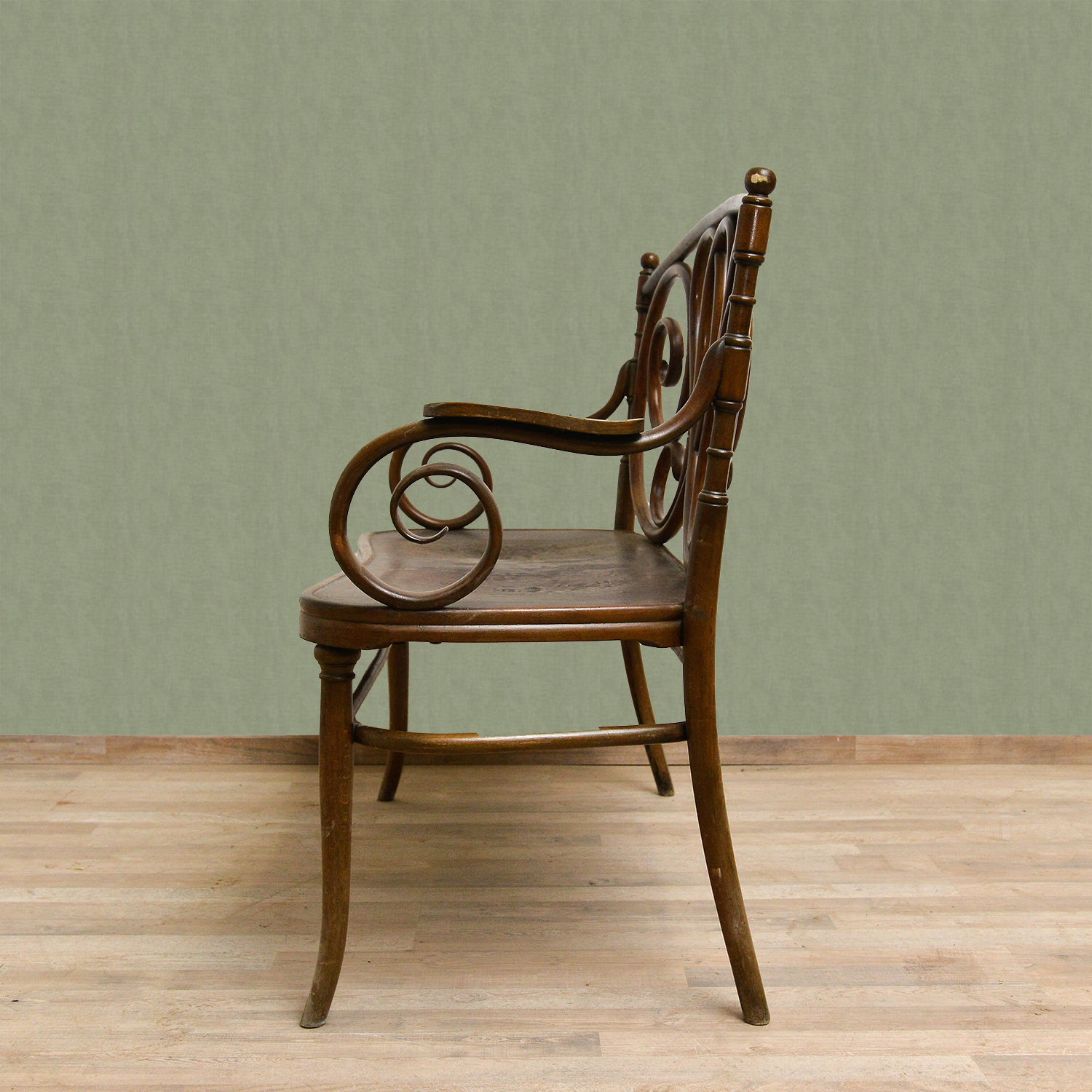 Panchetta a due posti konig in stile Thonet risalente alla fine dell'800, in faggio curvato.