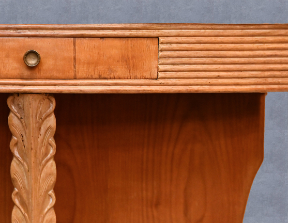 La console ha un piccolo cassetto frontale, e montante e frontale intagliati. È da restaurare.