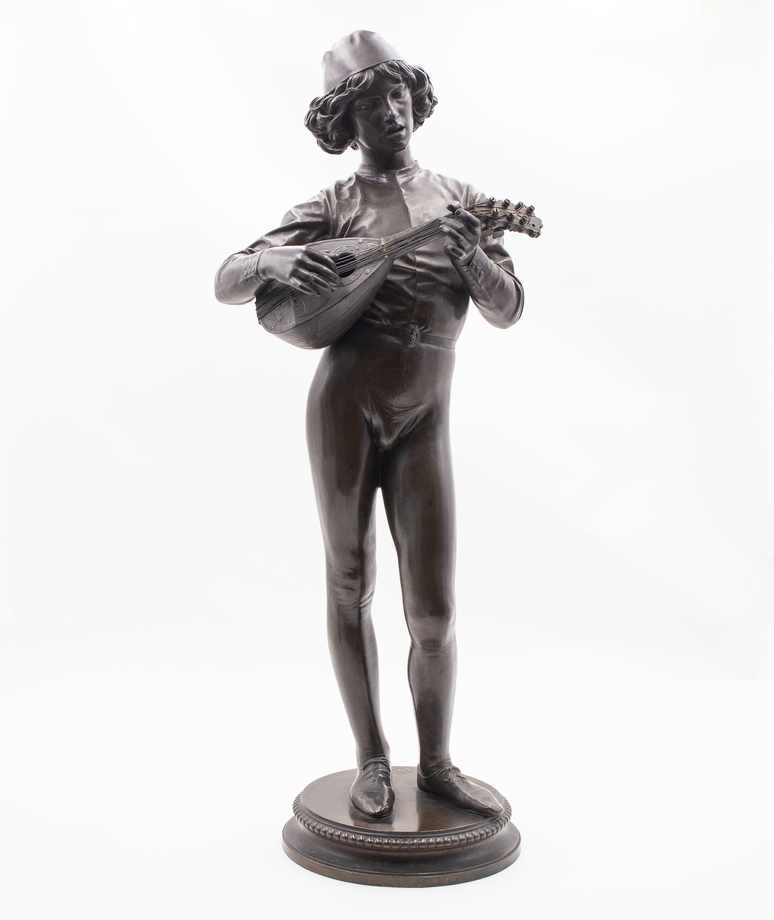 Il bronzo è una riduzione contemporanea, eseguita con precisione e magistralmente fusa, del capolavoro di Paul Dubois "Cantante e Suonatore fiorentino", alto 155 cm ed esposto al Museo d'Orsay, per il quale l'artista fu insignito della medaglia d'onore al Salon di Parigi del 1865. L'opera fece da faro e fu seguita da una pletora di rappresentazioni di giovani.
