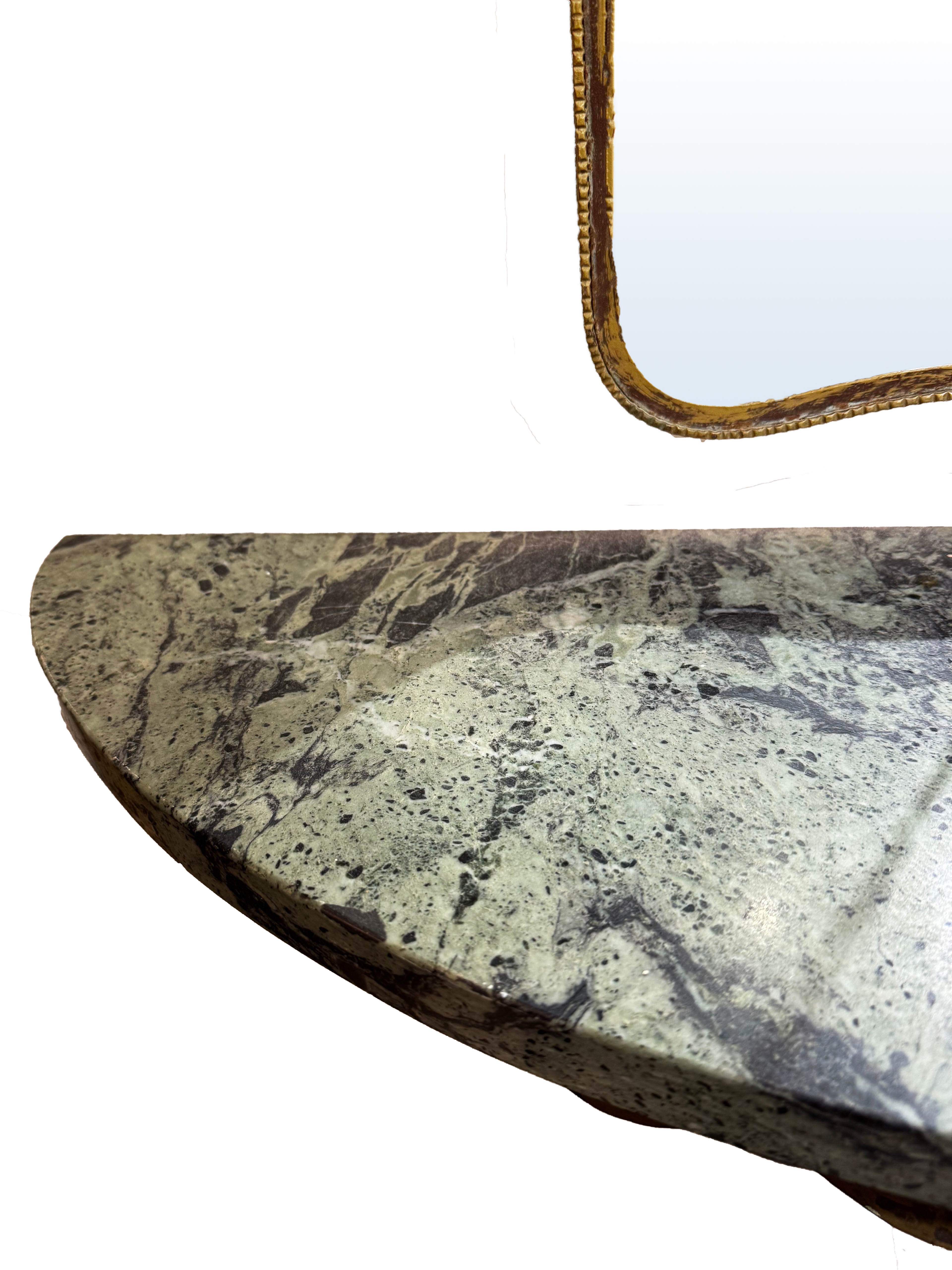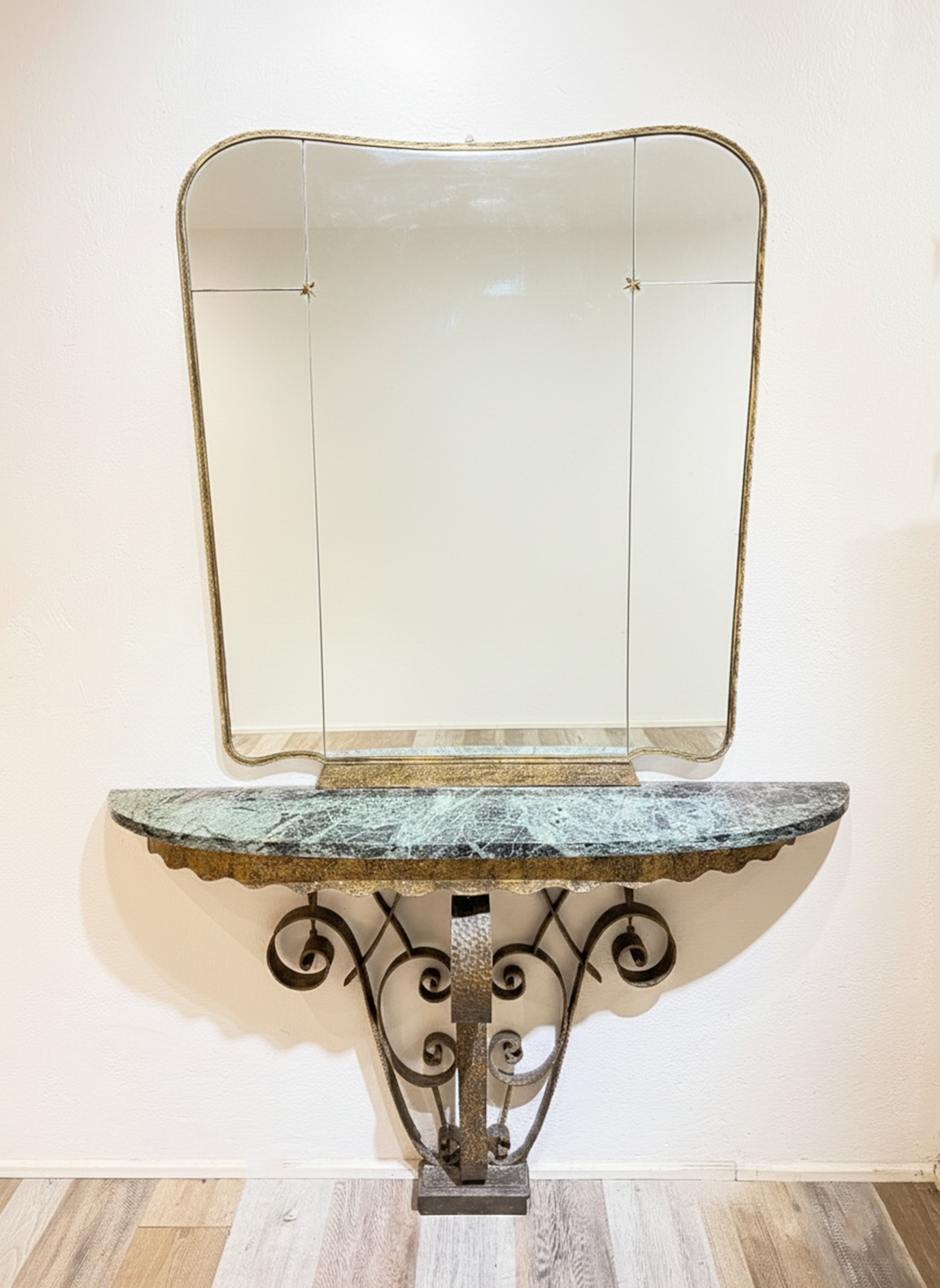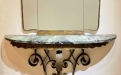 Elegante set consolle con specchio in ferro battuto e marmo, Pier Luigi Colli, manifattura italiana del XX secolo.