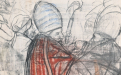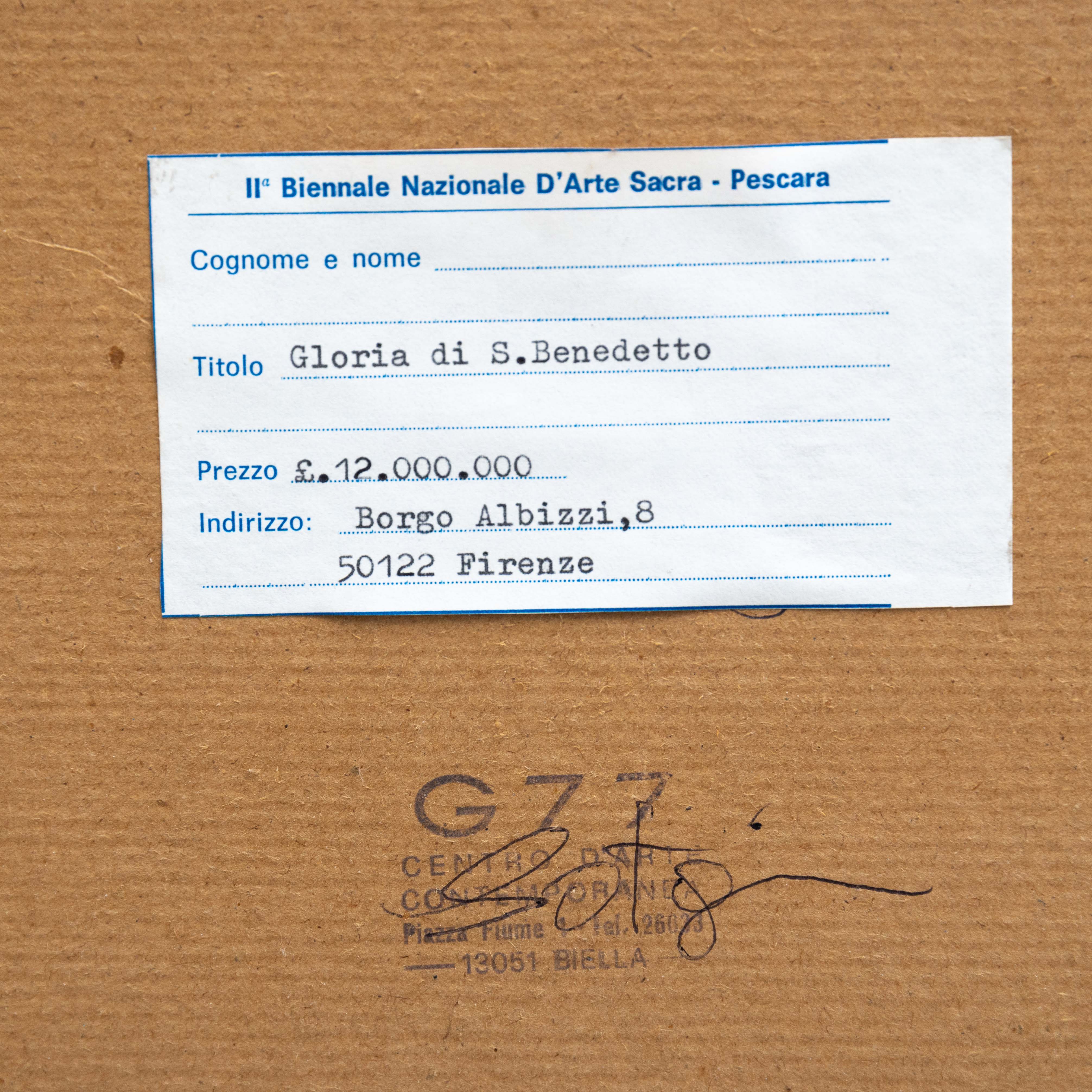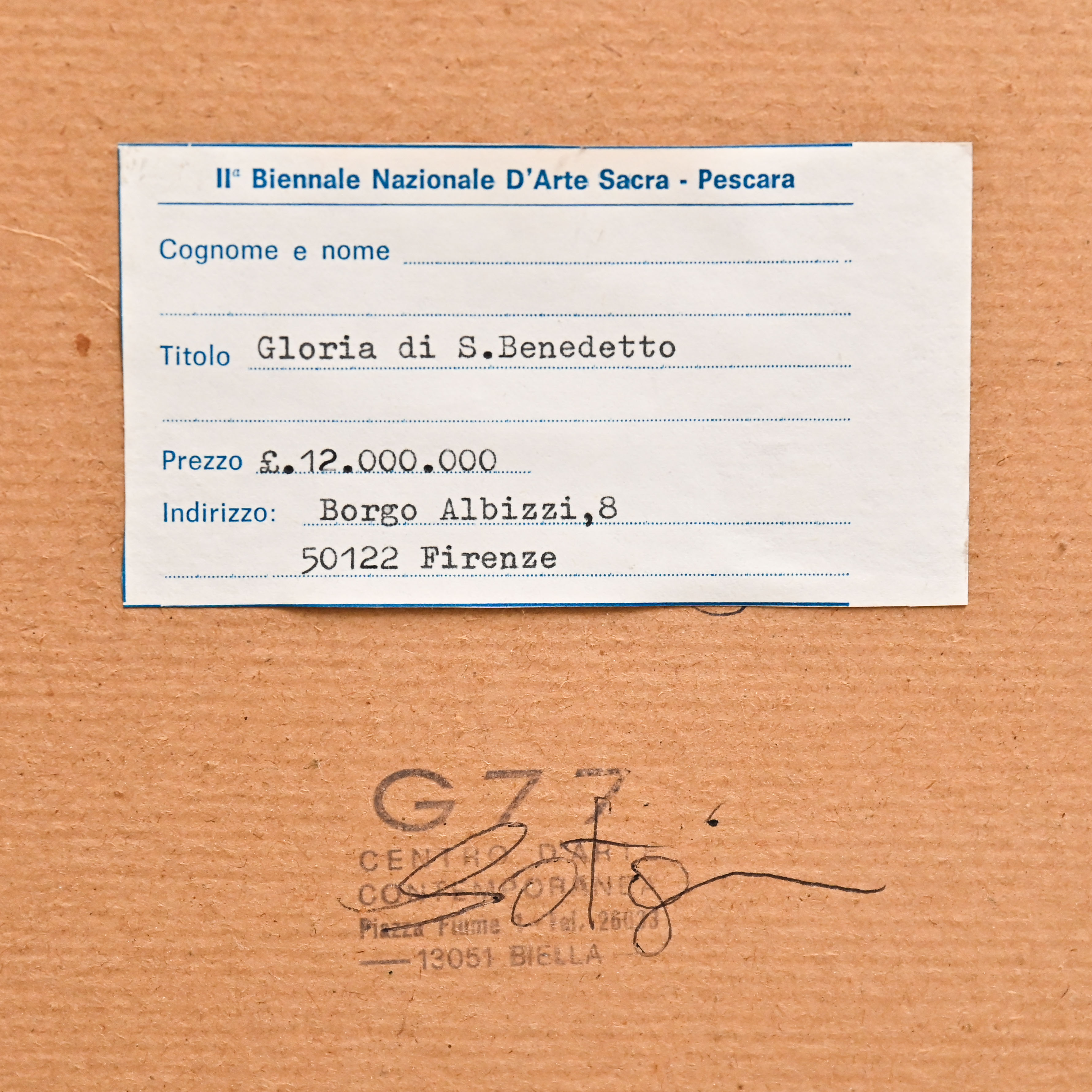 "Gloria di San Benedetto" tecnica mista su carta di Pietro Annigoni (1910-1988), al retro cartiglio della IIa Biennale di Arte Sacre di Pescara.