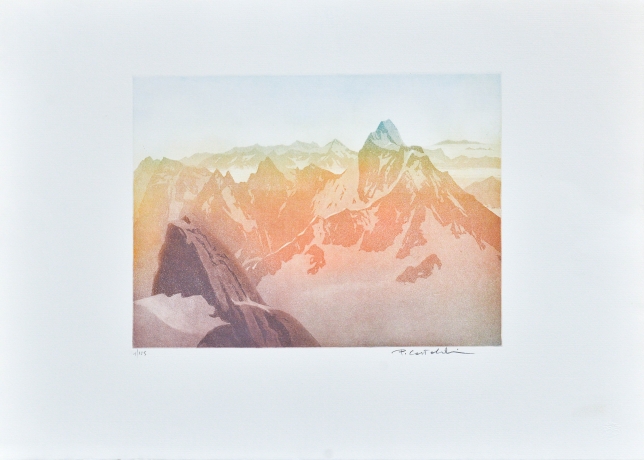 "Silenzio in montagna" - Acquatinta/Puntasecca di Placido Castaldi, esemplare 1/125, risalente al 1985