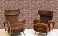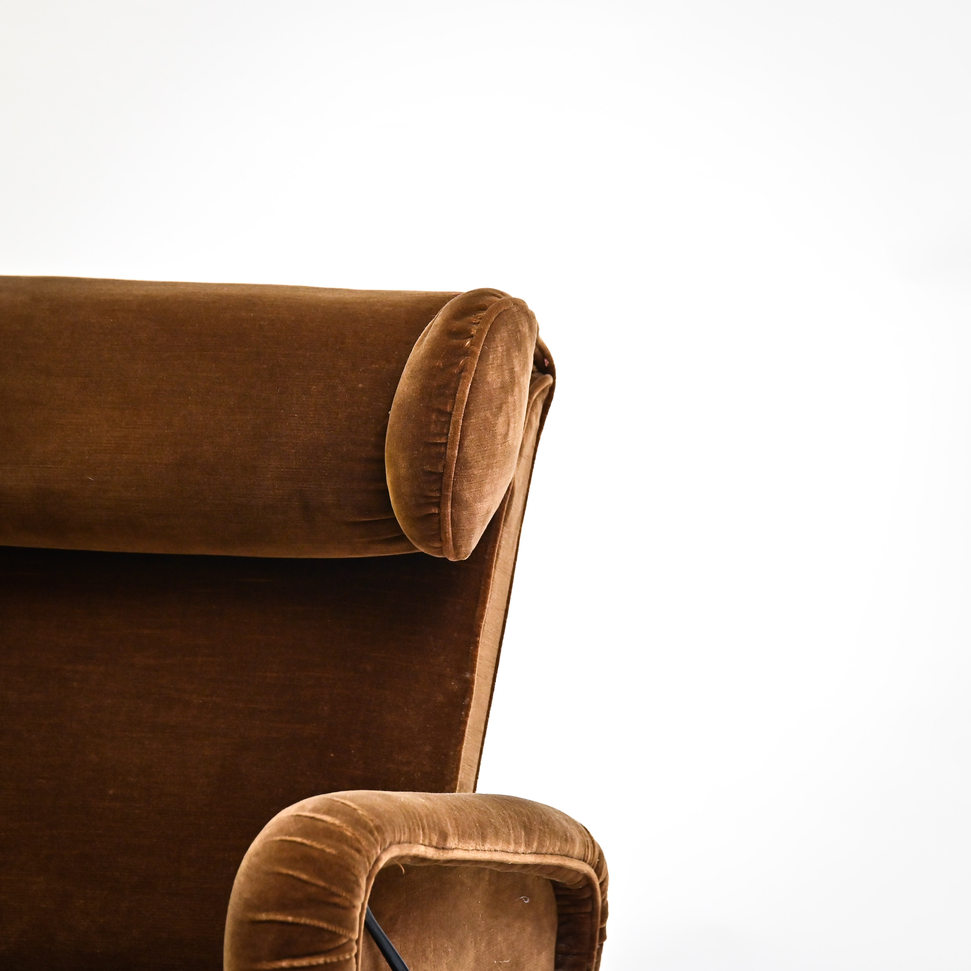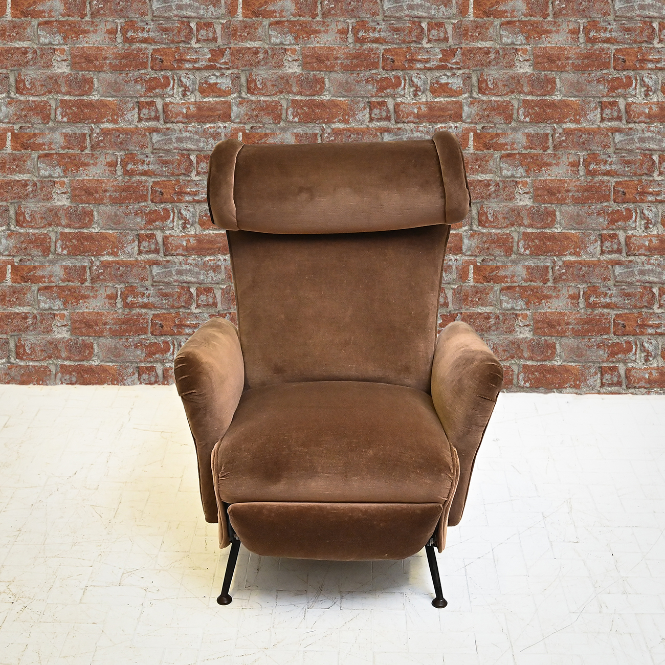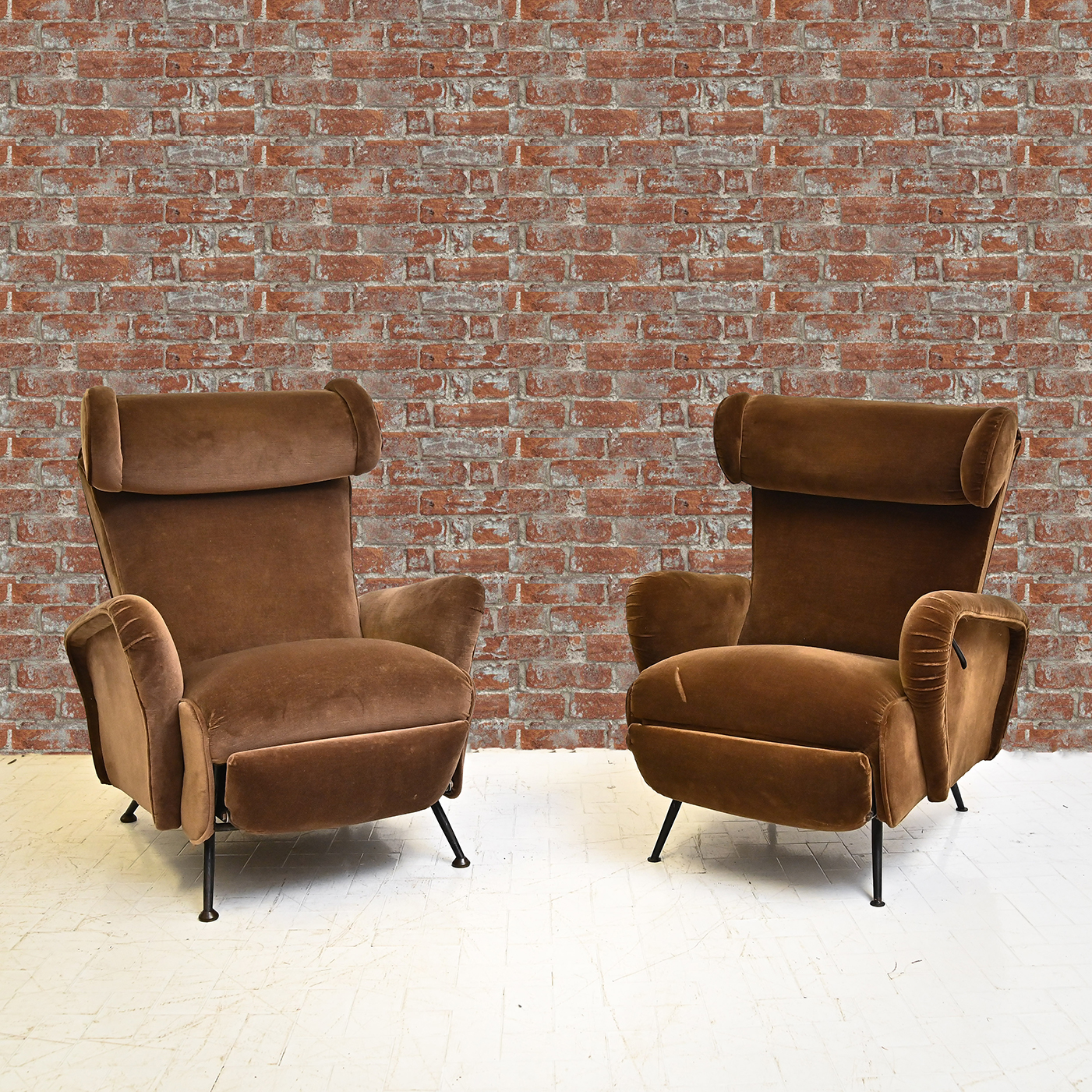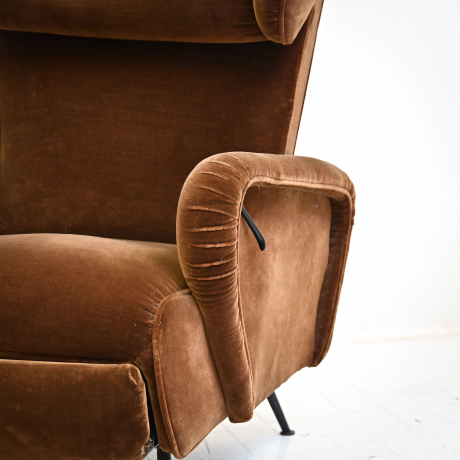 Coppia poltrone reclinabili in velluto con piedi in ferro, anni '50.