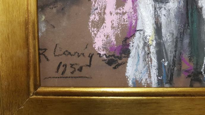 Bel gessetto su compensato in cornice dorata del 1950 firmato Roberto Carignani (Napoli 1894 - 1975). Pittore Italiano.