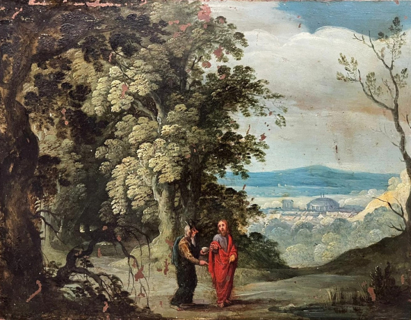 Olio su Rame, "Gesù ed il Tentatore", Scuola Fiamminga del XVIII sec.