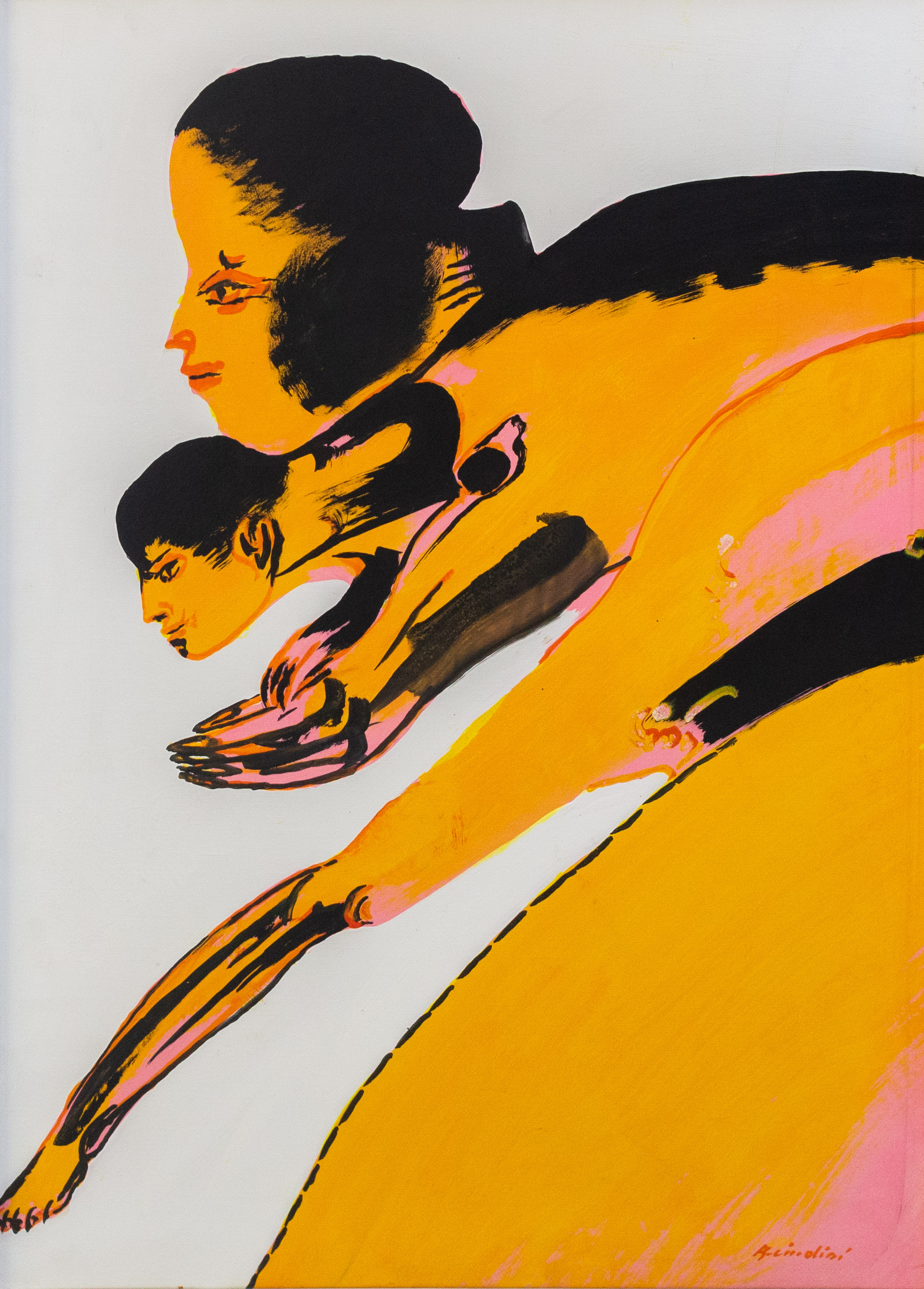 Remo Brindisi ( Roma,1918 - Lido di Spina, 1996 ).Ha studiato a Pescara, l'Aquila, Roma e presso la Scuola d'Arte di Urbino. Compie numerosi viaggi, al termine dei quali si trasferisce a Milano. Nel 1940 tiene la sua prima personale, il cui catalogo verrà introdotto dalla presentazione di Eugenio Montale. Espone a Parigi, Nizza, Mialno, Venezia, Roma, Cairo, San Paolo del Brasile. Partecipa a numerose Biennali di Venezia e Quadriennali di Roma, sarà presidente della Triennale di Milano. Le sue tematiche ricorrenti sono figure, ritratti, paesaggi.