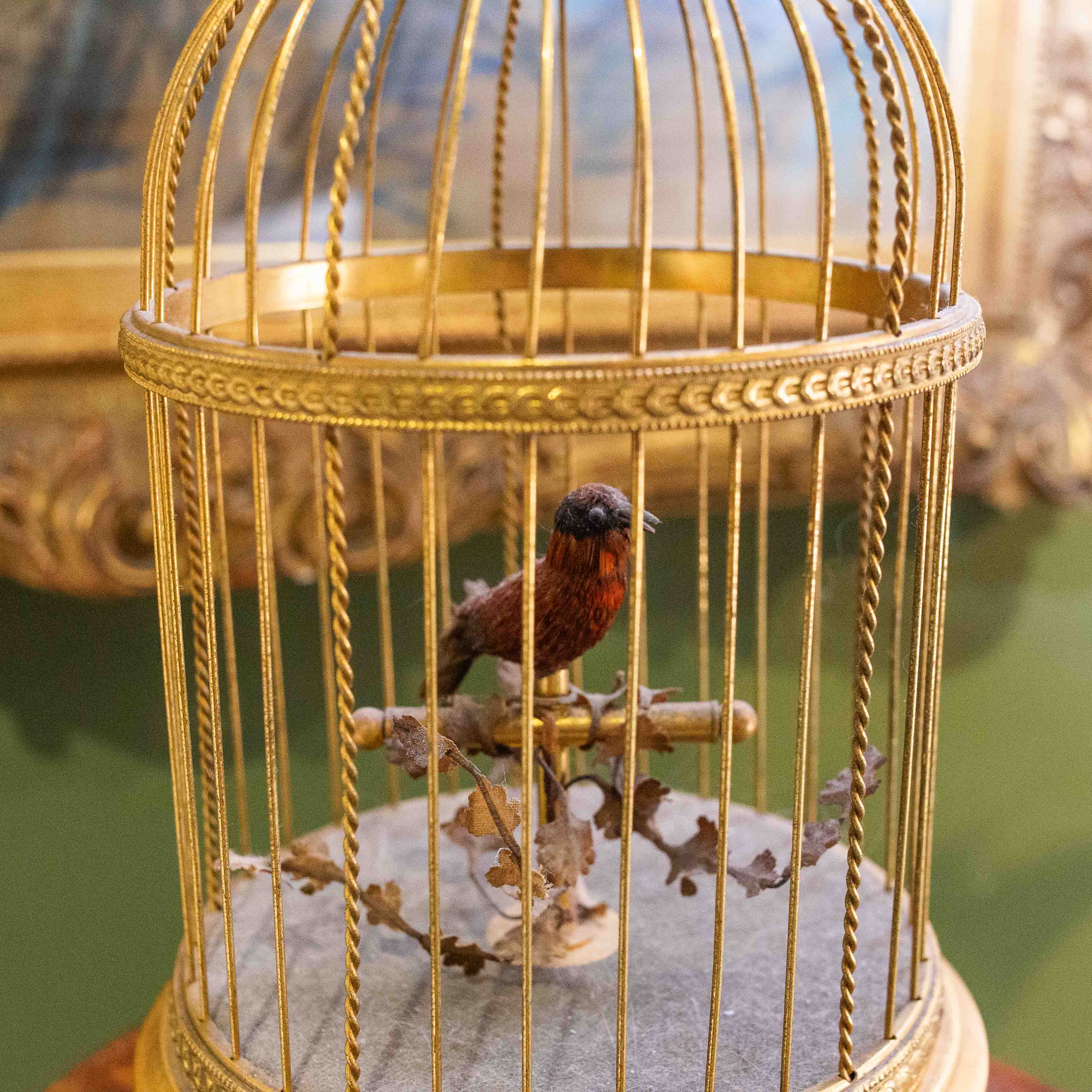 Reuge a Sainte Croix Swiss Carillon raffigurante uccelli canterini entro gabbia dorata, Primi del '900