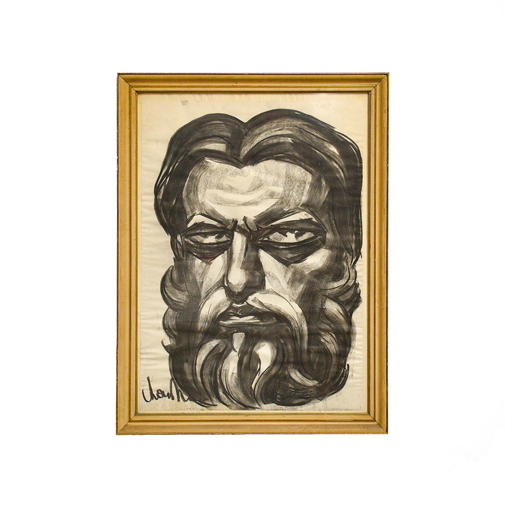 "Self-portrait", charcoal on paper by Sandrùn (Francesco Barbera, Biella, 1927-1970). It dates back to the 50s / 60s. Signed on the lower left.