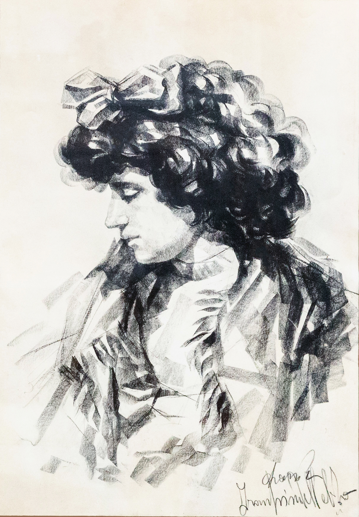Sandrùn (F. Barbera), "La Giovinetta" - Carboncino su carta, firmato, Metà del '900