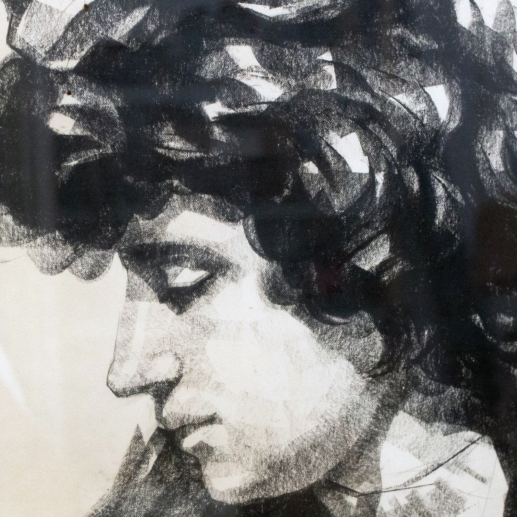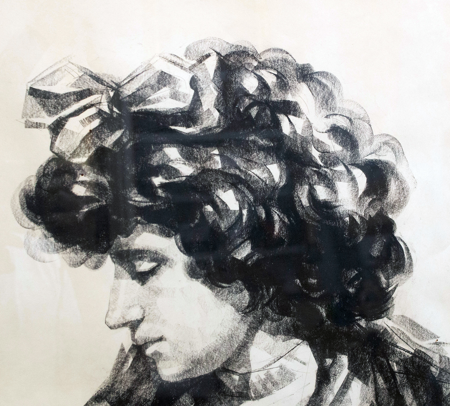 "Ritratto di Giovinetta", carboncino su carta di Sandrùn (Francesco Barbera, Biella, 1927-1970). Risale al 1951. Firmato in basso a destra.