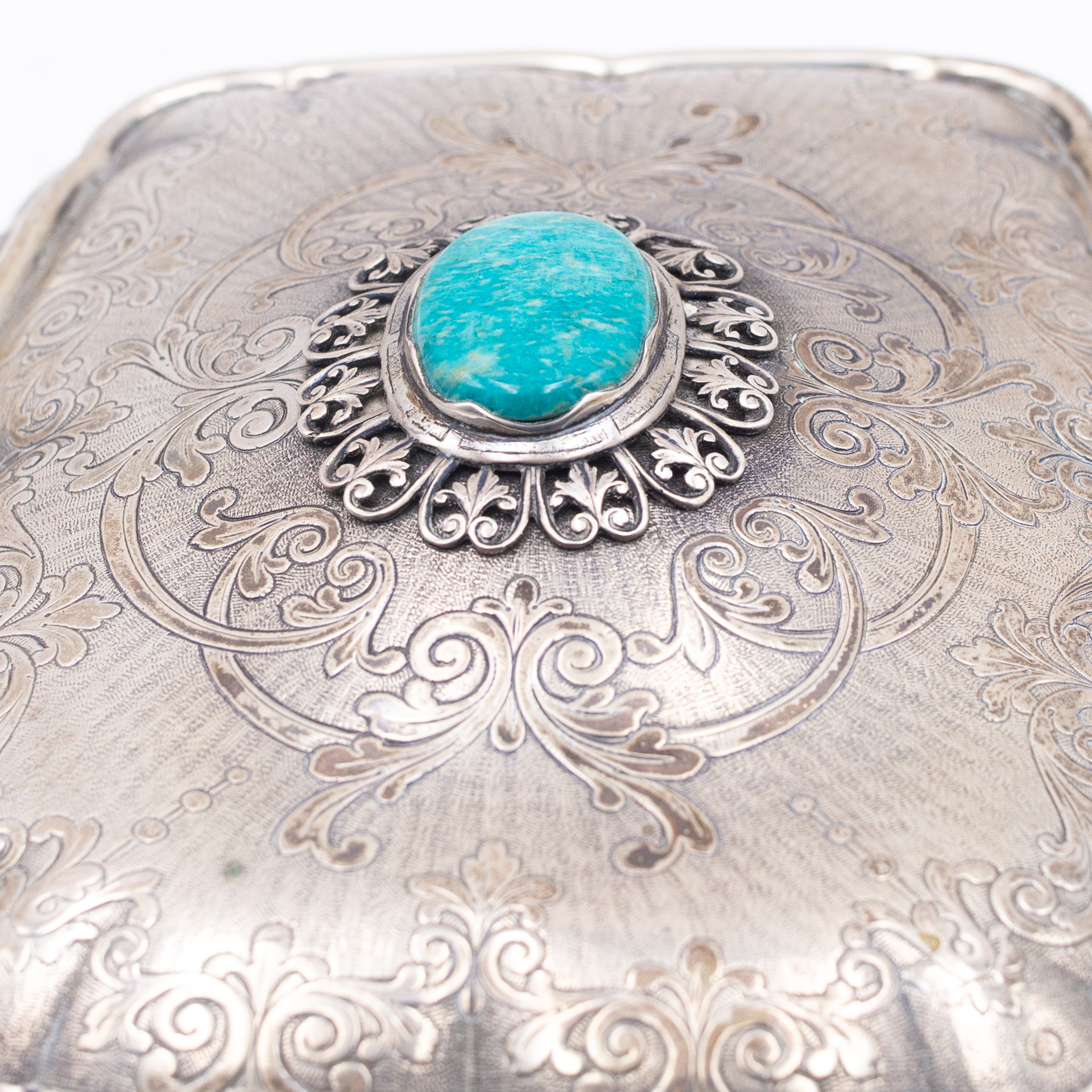 Scatola in argento 800 con pietra Amazzonite, Primi '900