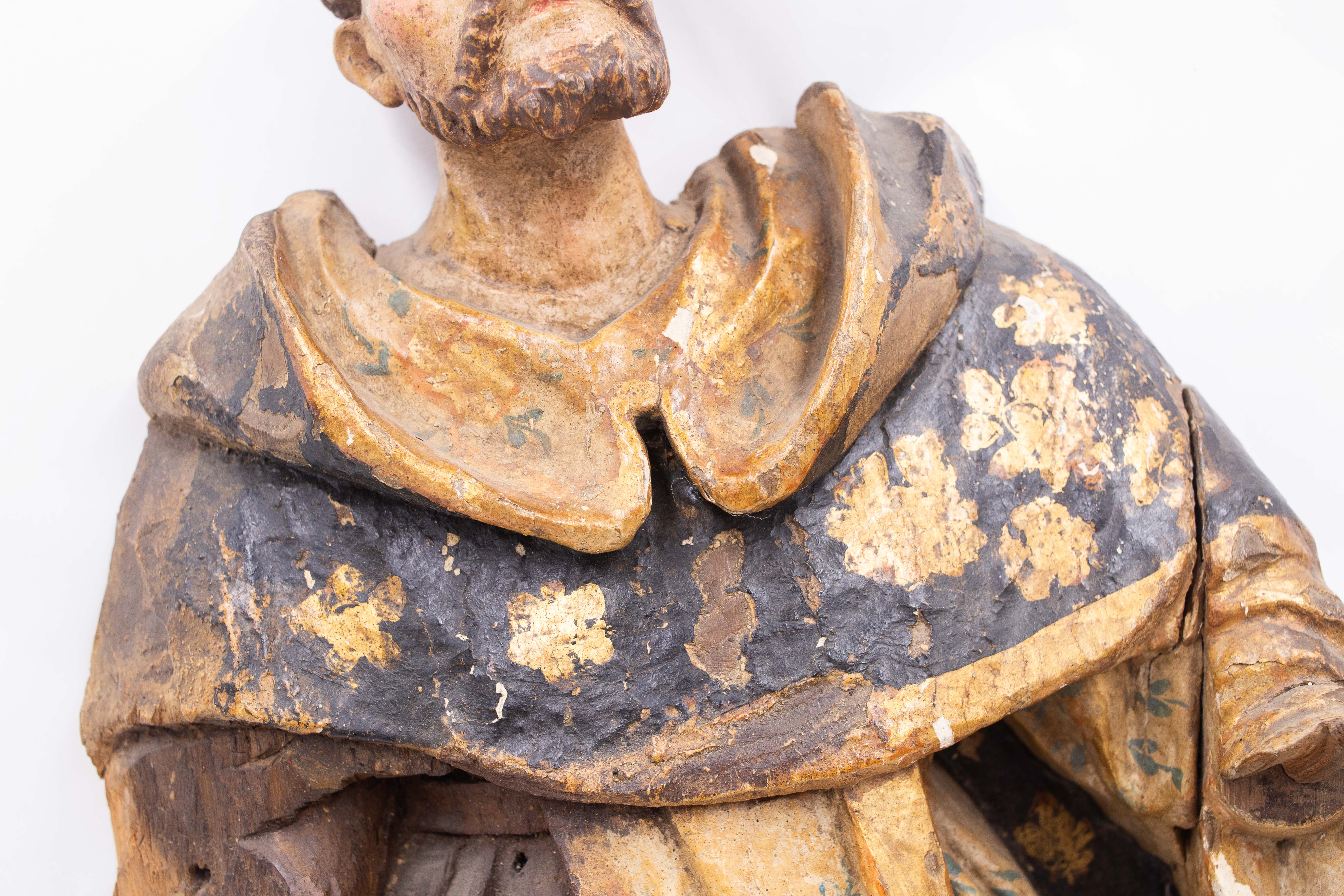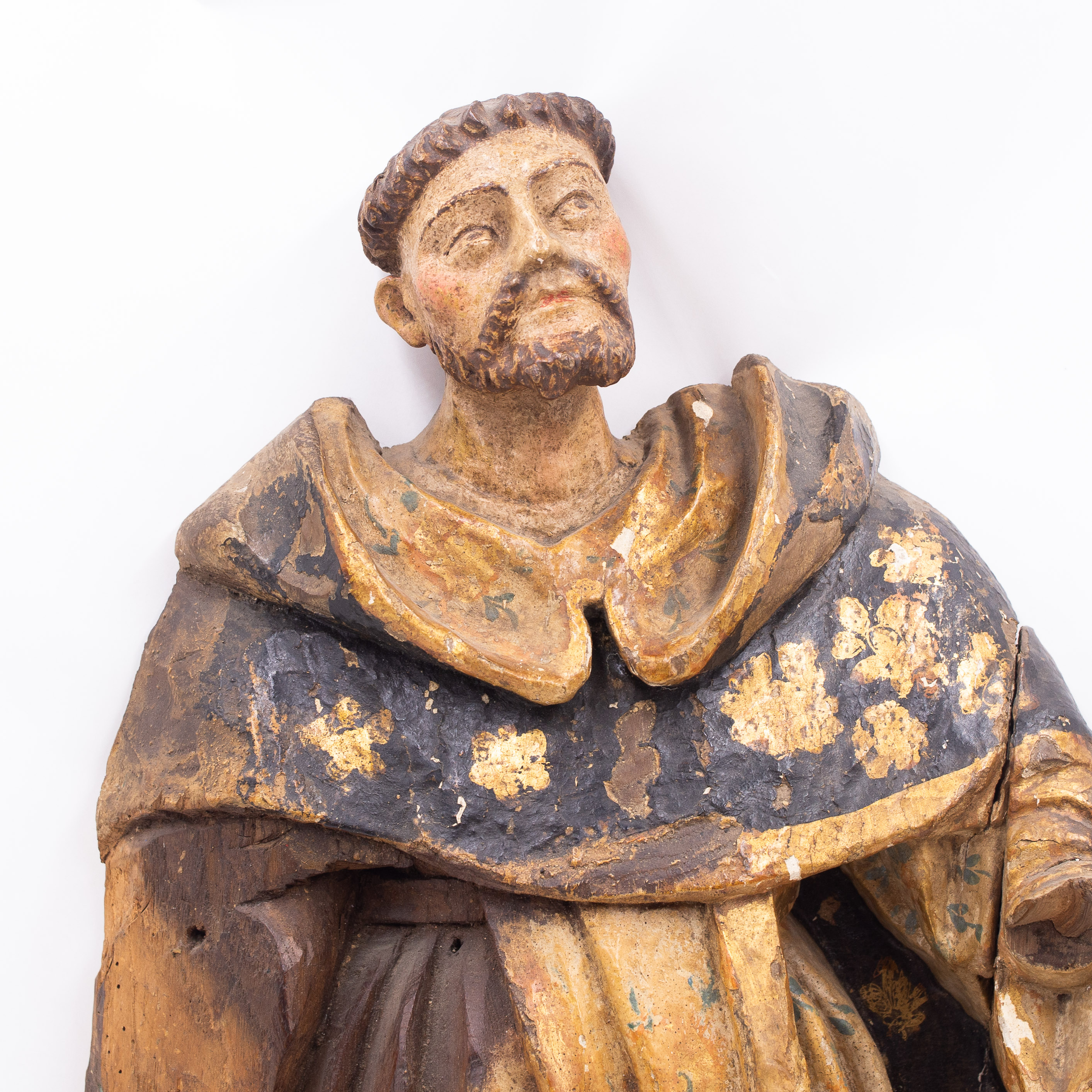 La scultura lignea policroma raffigura probabilmente San Pietro da Verona o San Pietro Apostolo, risalente al XVII.
