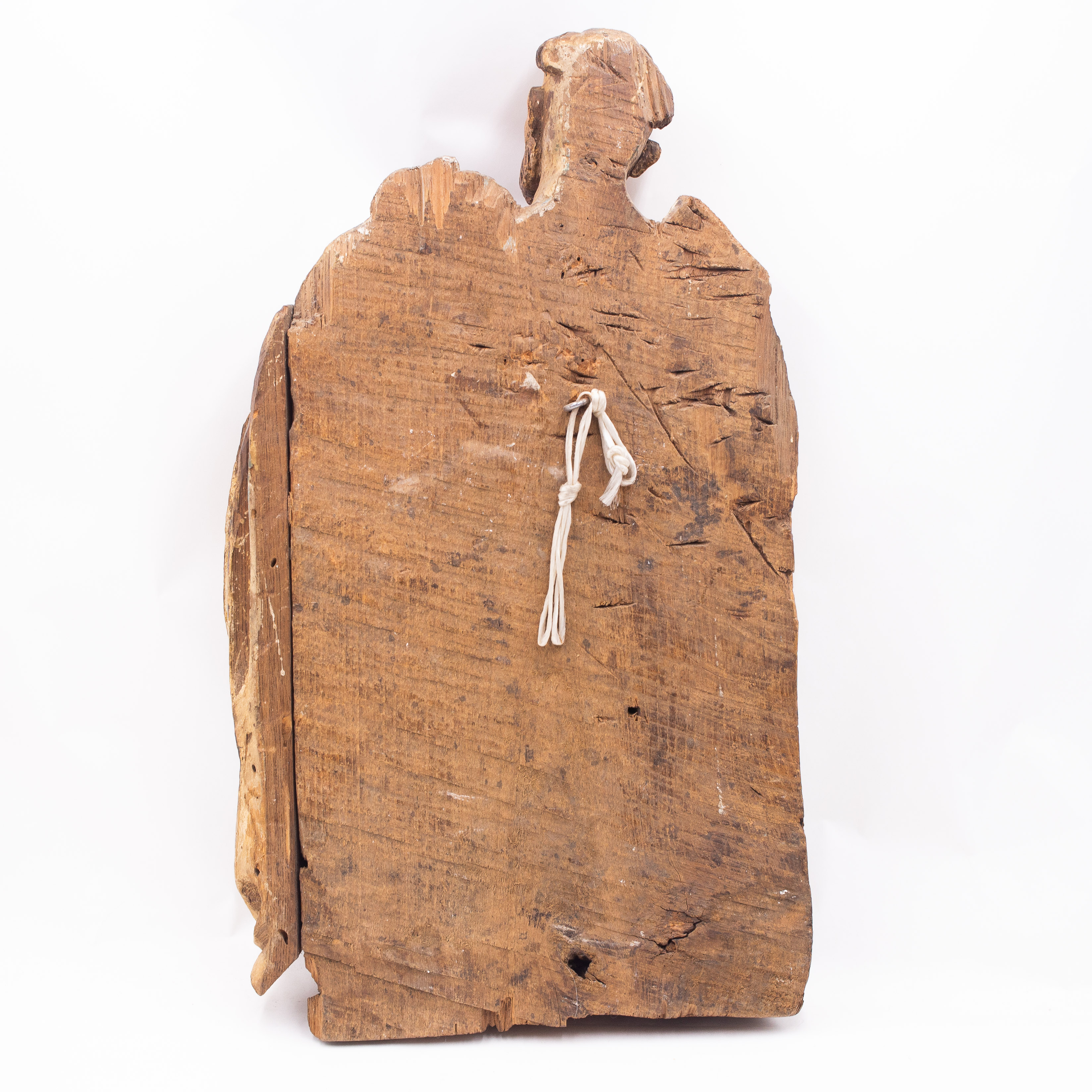 È una scultura scolpita nel legno con resti di policromia e doratura.