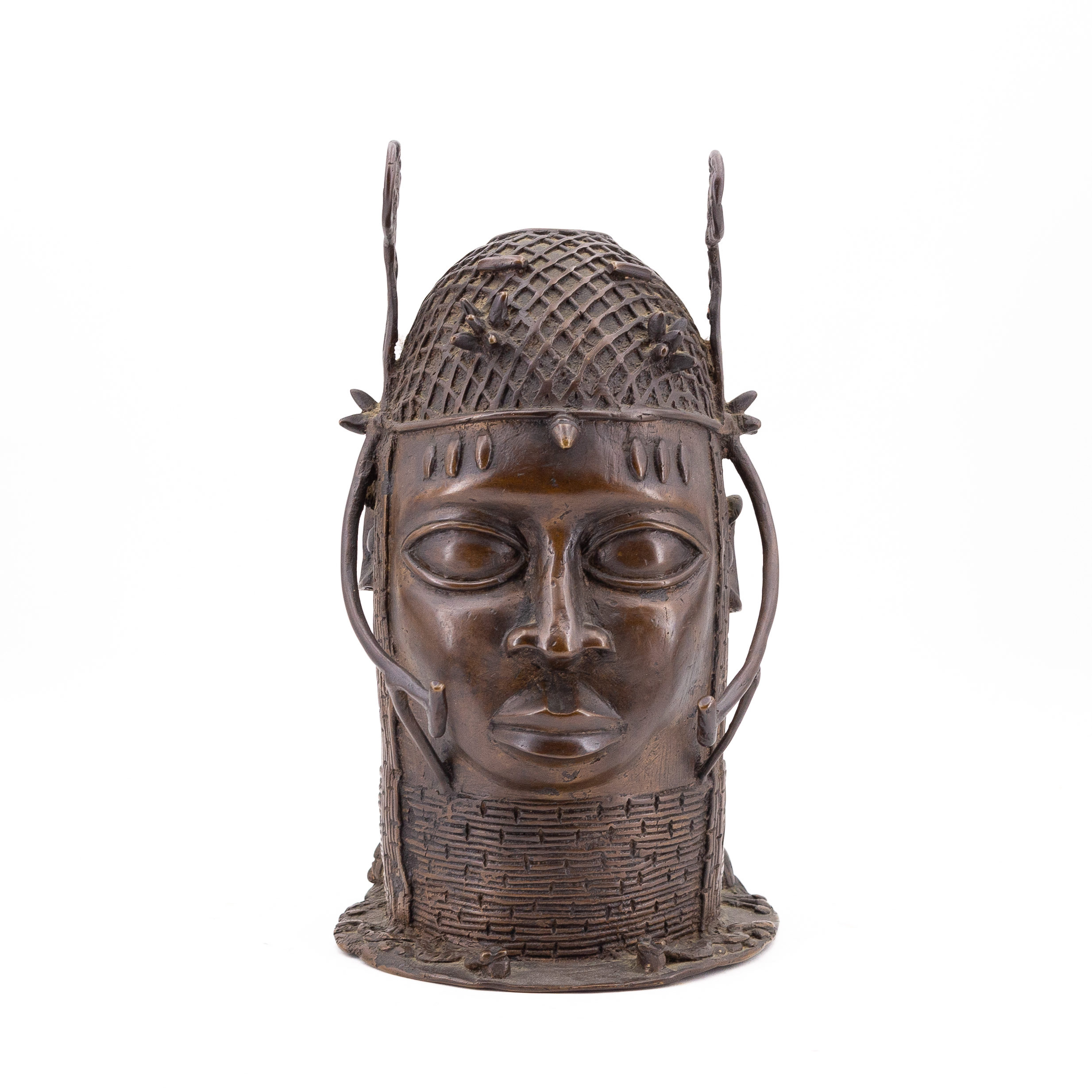 Scultura africana in bronzo, "Testa di uomo con copricapo", Epoca Metà '900