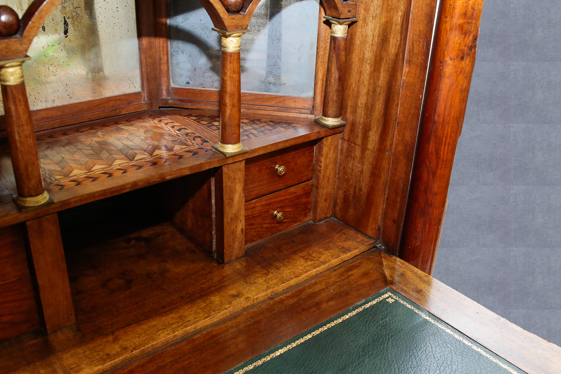 Bellissimo secretaire in stile Impero, origine Emilia, in noce completamente originale anche nella parte di ferramenta. epoca '700