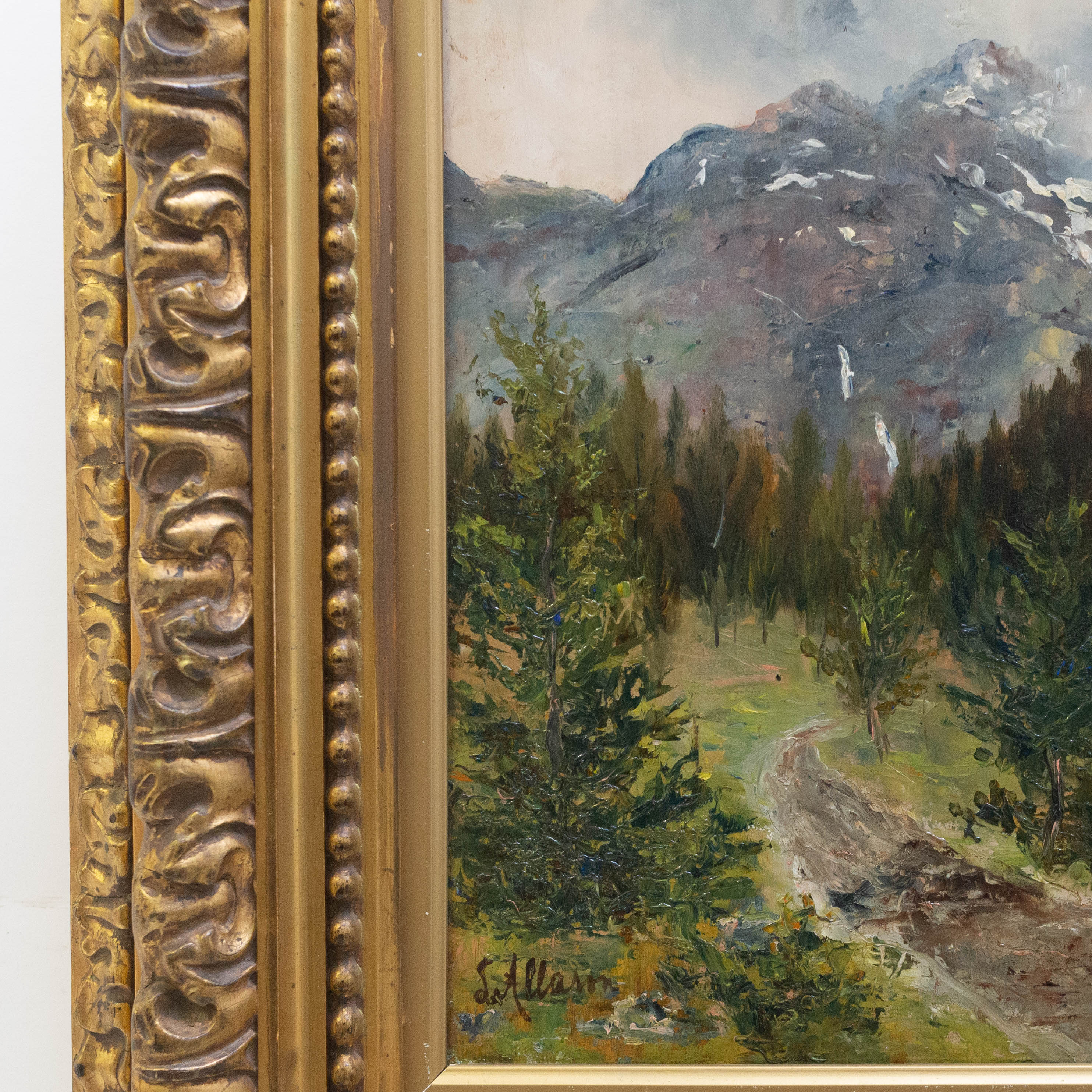 Olio su tavola di Silvio Allason, "Monte Bianco, La Thuile", firmato, 1900