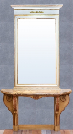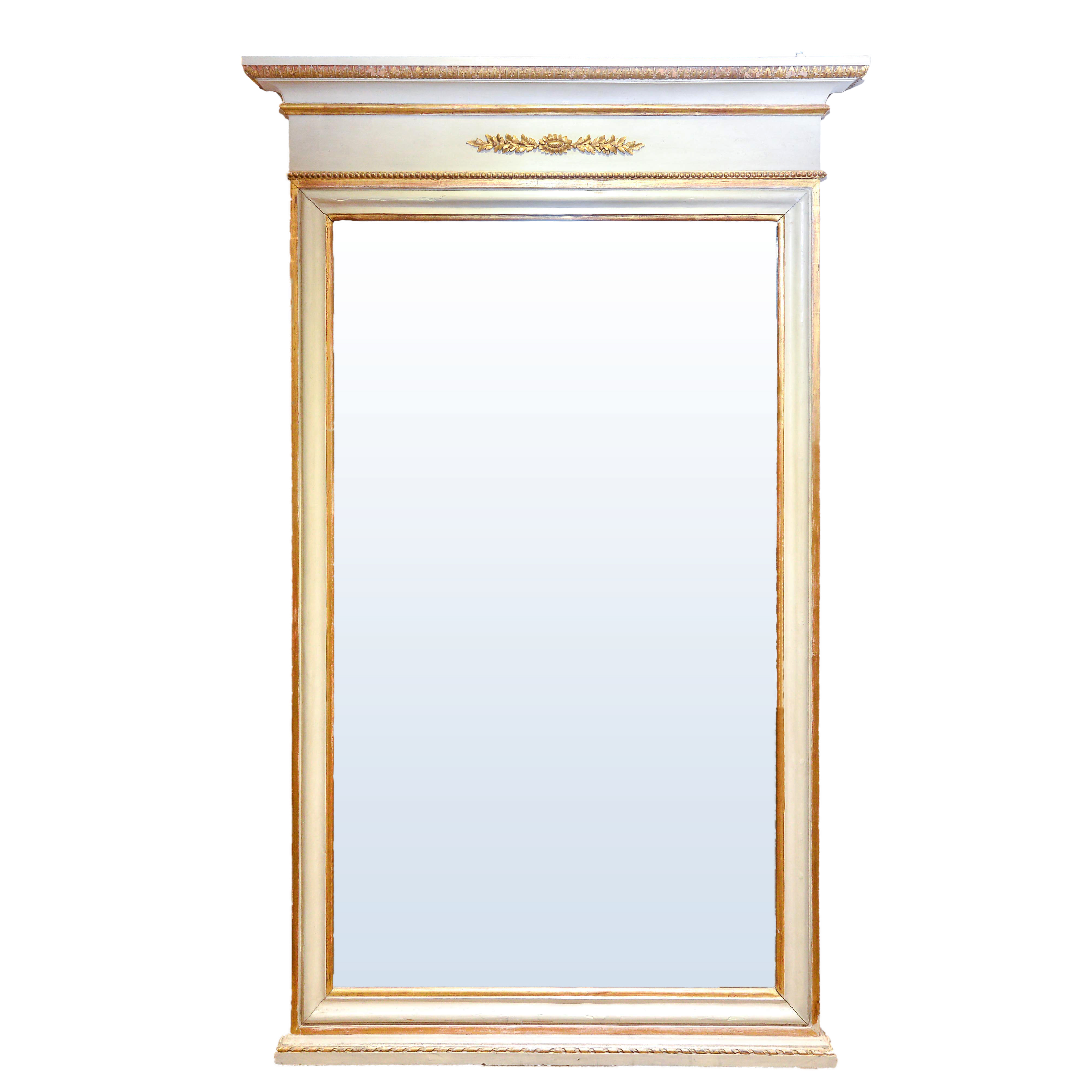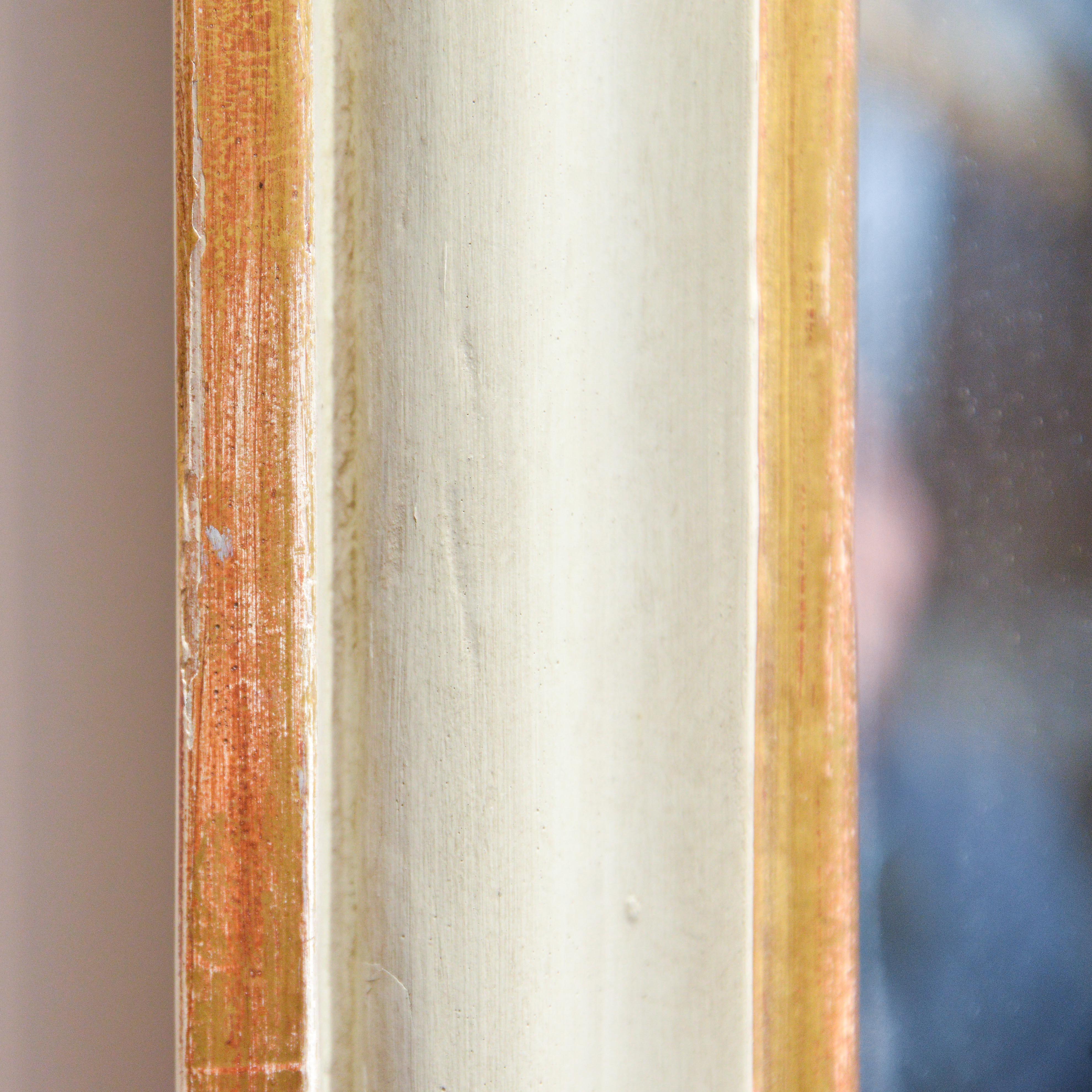Specchiera caminiera neoclassica, laccata sui toni dell'avorio con filetti dorati, risalente agli anni '20 circa