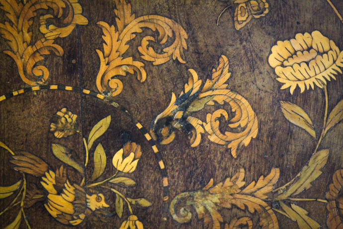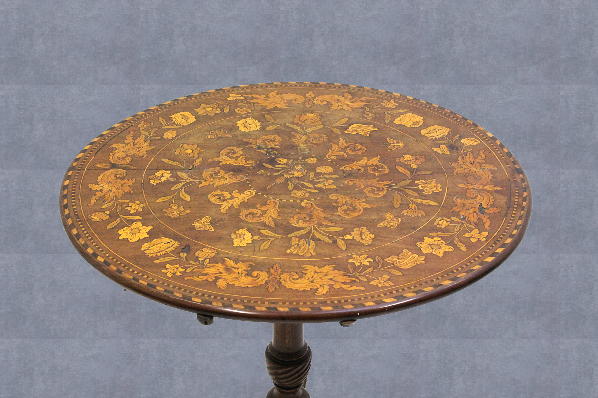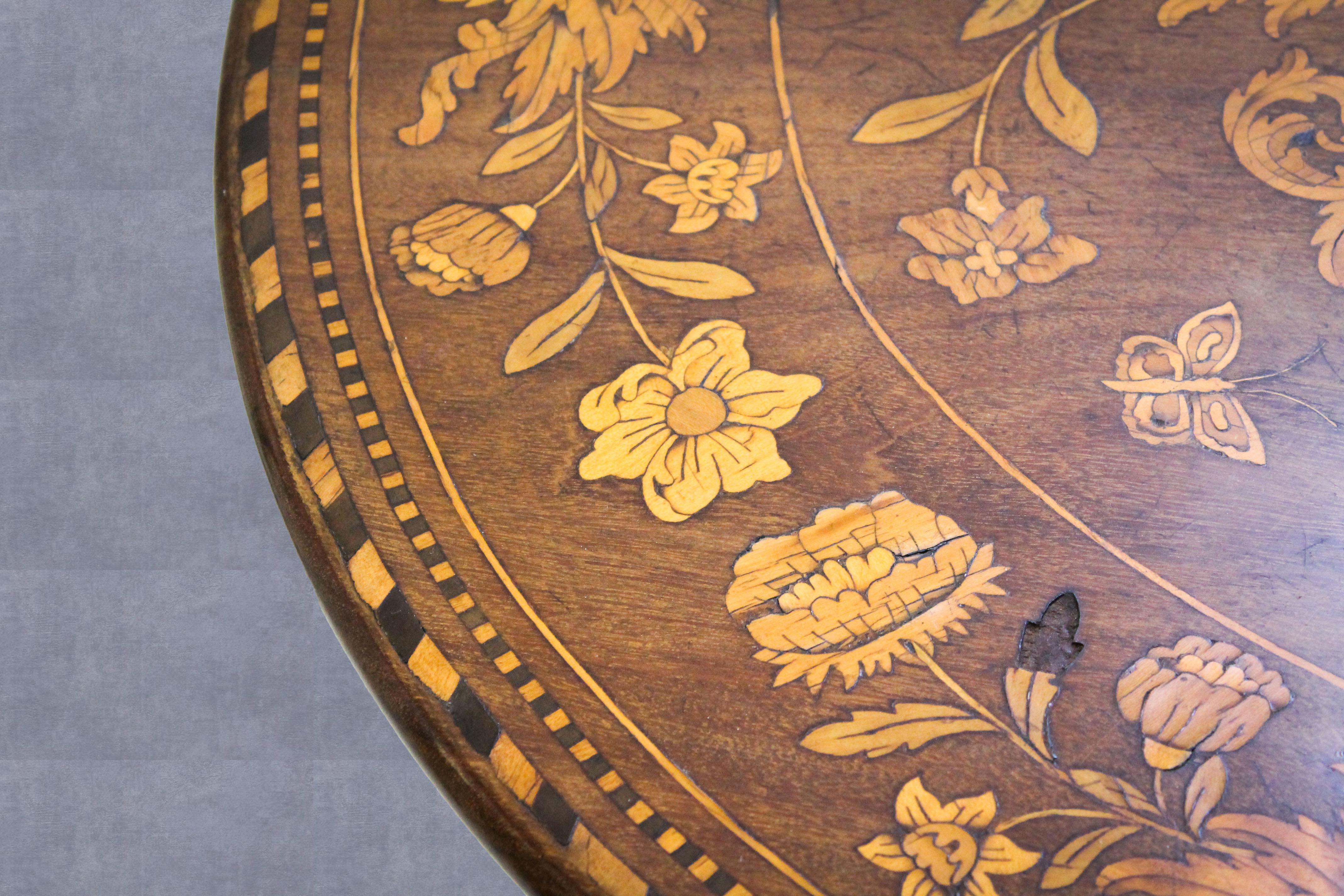 Tavolino rotondo olandese con intarsi di pregio, metà '800;