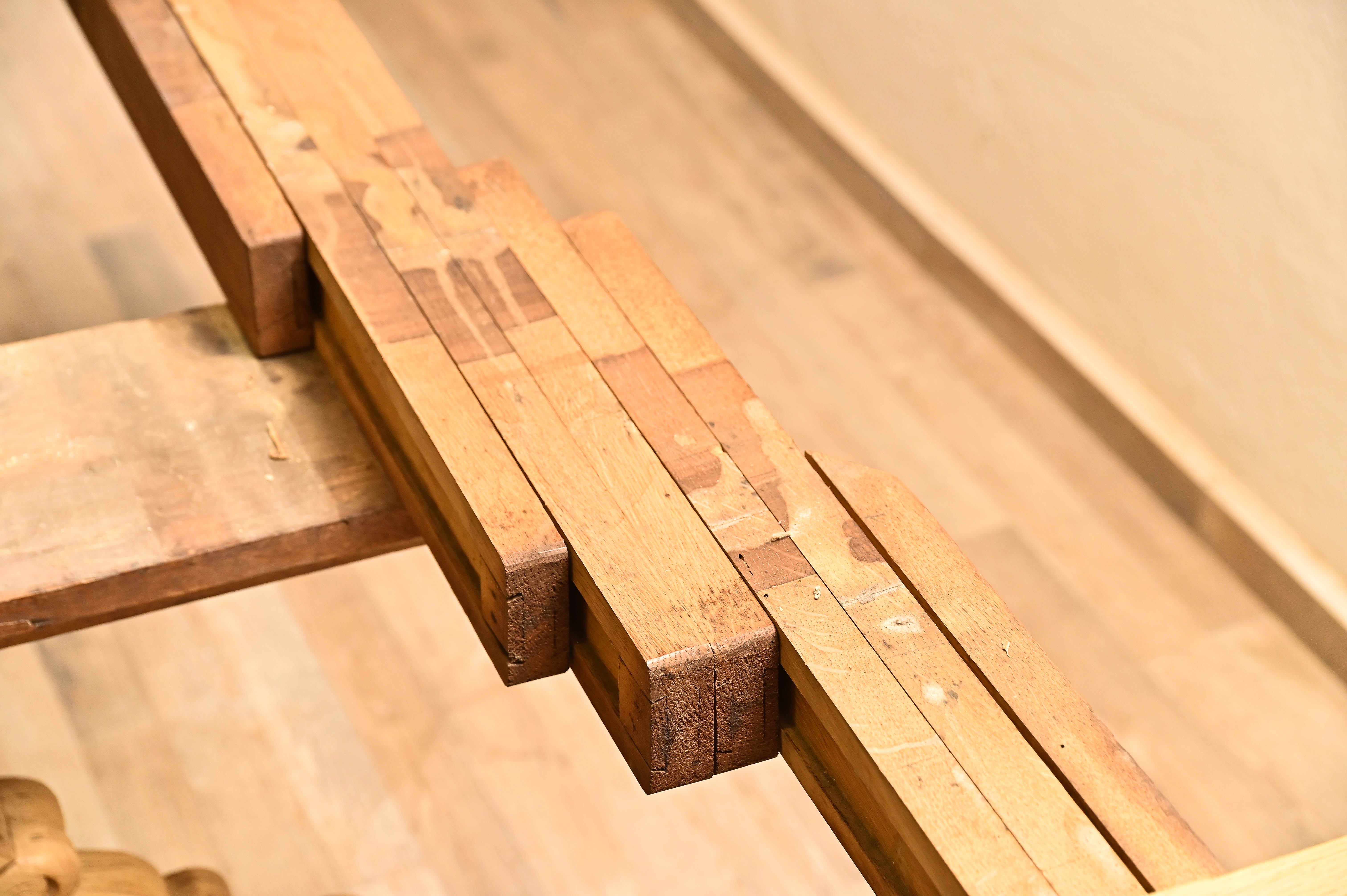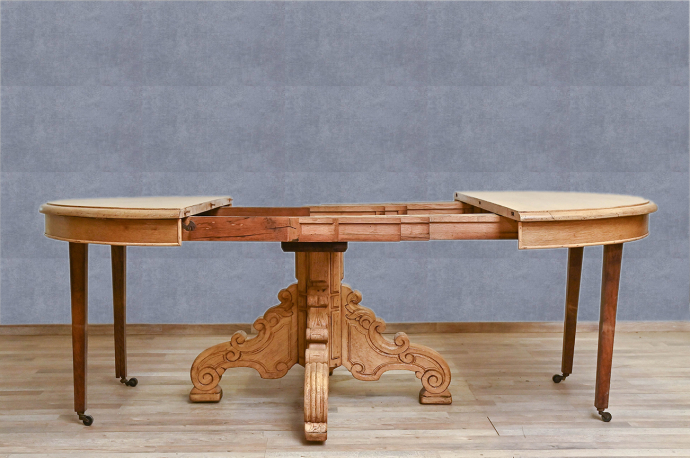 Tavolo ovale, allungabile, in castagno di fine '800, restaurato con finitura a legno grezzo.
