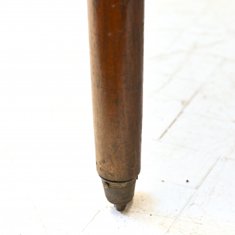 Raro tavolo piemontese a bandelle, apribile, in noce. Il tavolo risale al periodo della restaurazione, 1820/1830. Ha un piano rotondo e una base quadrata sorretta da sei gambe con rotelle, le due centrali a sorreggere le guide con le allunghe (mancanti al momento). In ottime condizioni strutturali.