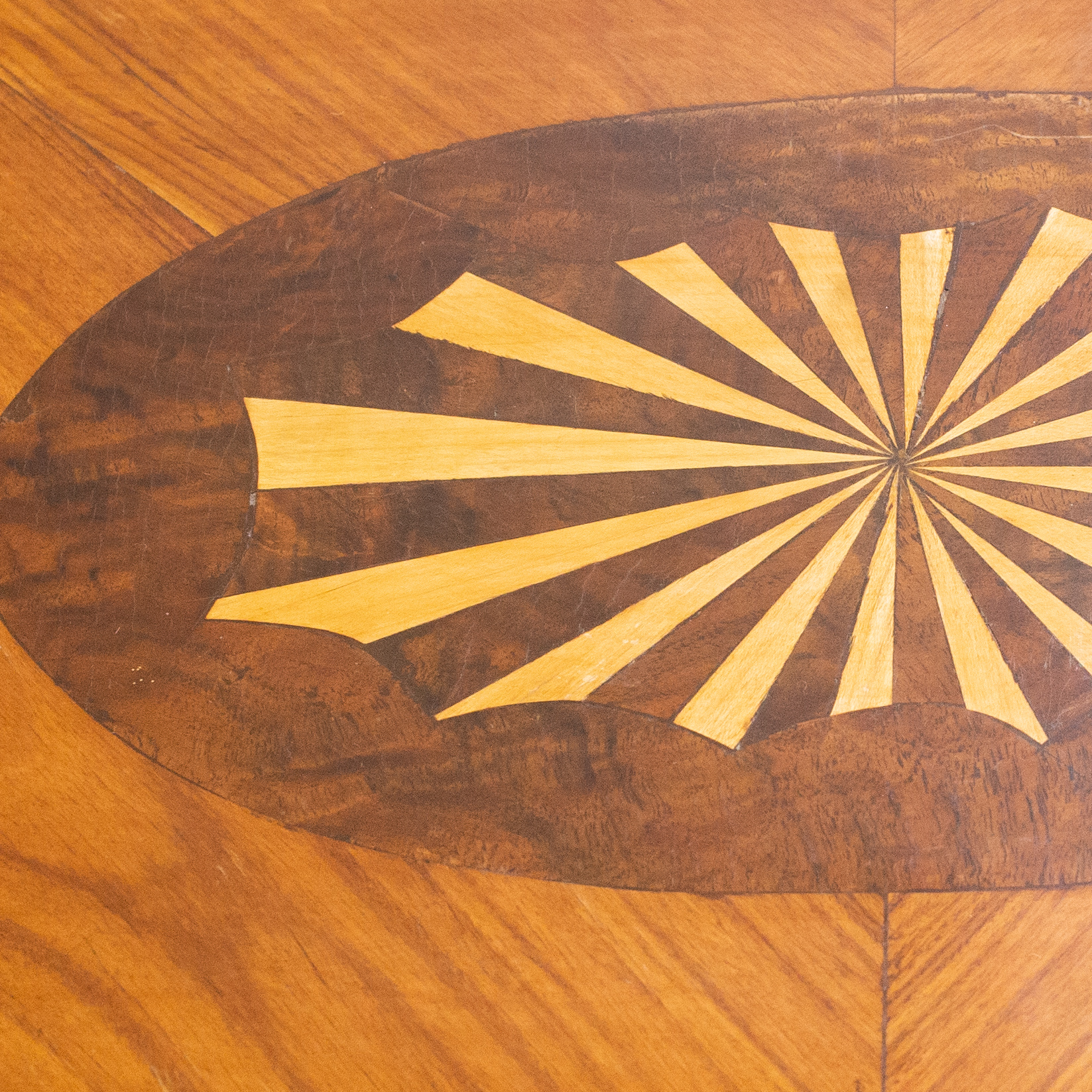 Bel tavolino da gioco con piano verde e intarsio a contrasto