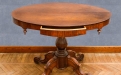 Tavolo Luigi Filippo ovale in noce, gamba tornita centrale, risalente al 1870 circa.