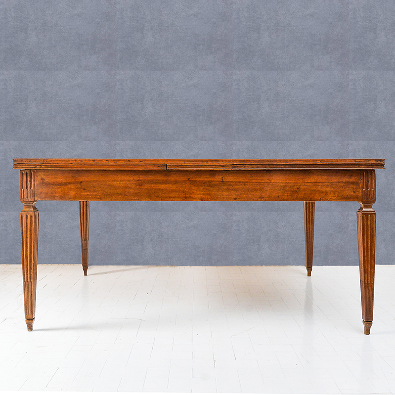 Raro ed elegante tavolo veneto in noce, allungabile, in stile Luigi XVI, risalente alla fine del '700, adatto ad accogliere fino a 10/12 persone.