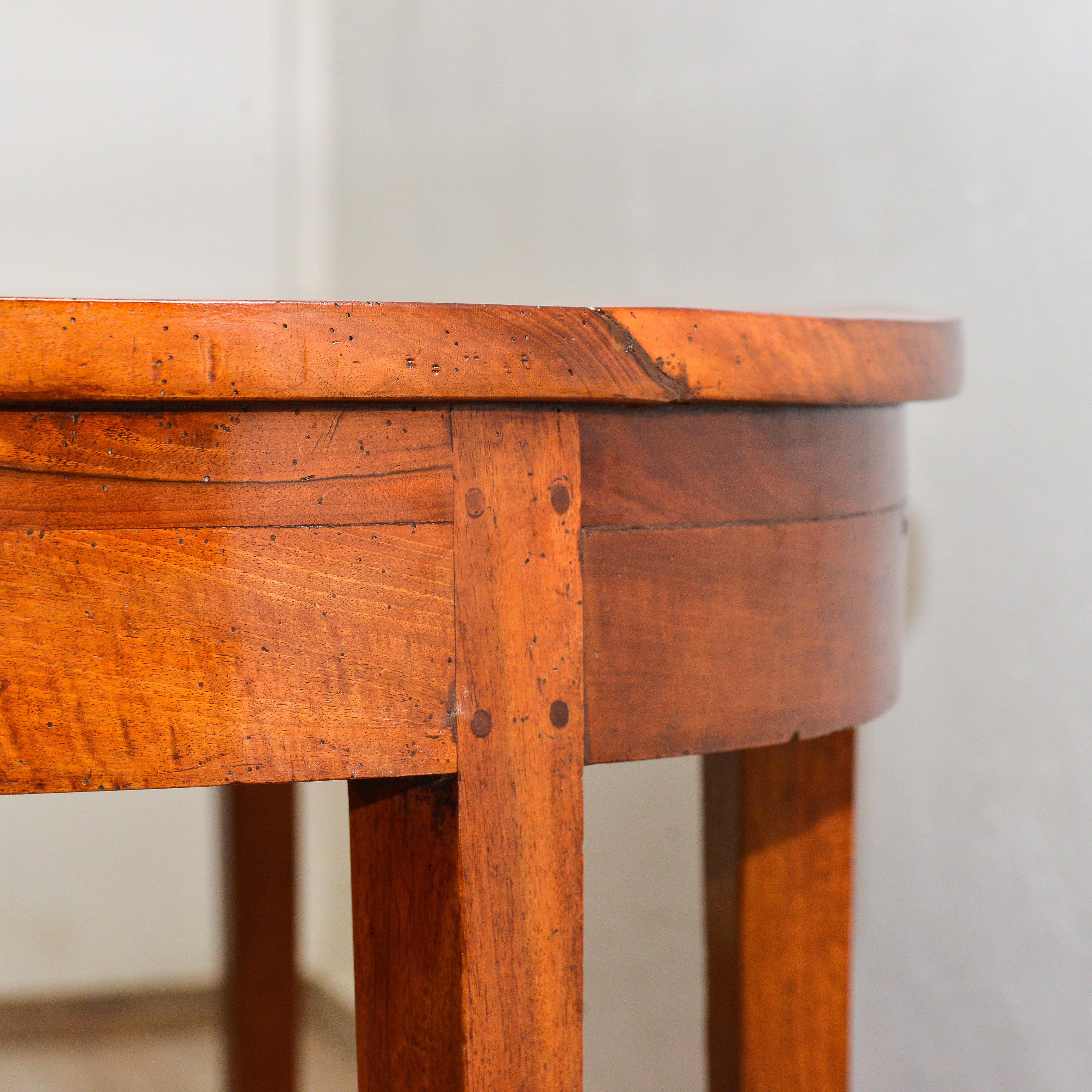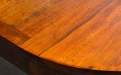 Tavolo ovale in noce di provenienza piemontese con gambe troncopiramidali. Il tavolo nasce da due consolle che sono state assemblate in un unico pezzo utilizzando due prolunghe per comporre la parte centrale.