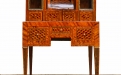 Elegante mobile da toeletta genovese in stile Napoleone III, con raffinato intarsio in legni misti: Marqueterie di bois de rose, palissandro, acero e pioppo colorato sulle tonalità del verde. I piccoli intarsi sono in bronzo; le ante in vetro molato e al suo interno il mobile nasconde un ulteriore serie di cassettini.