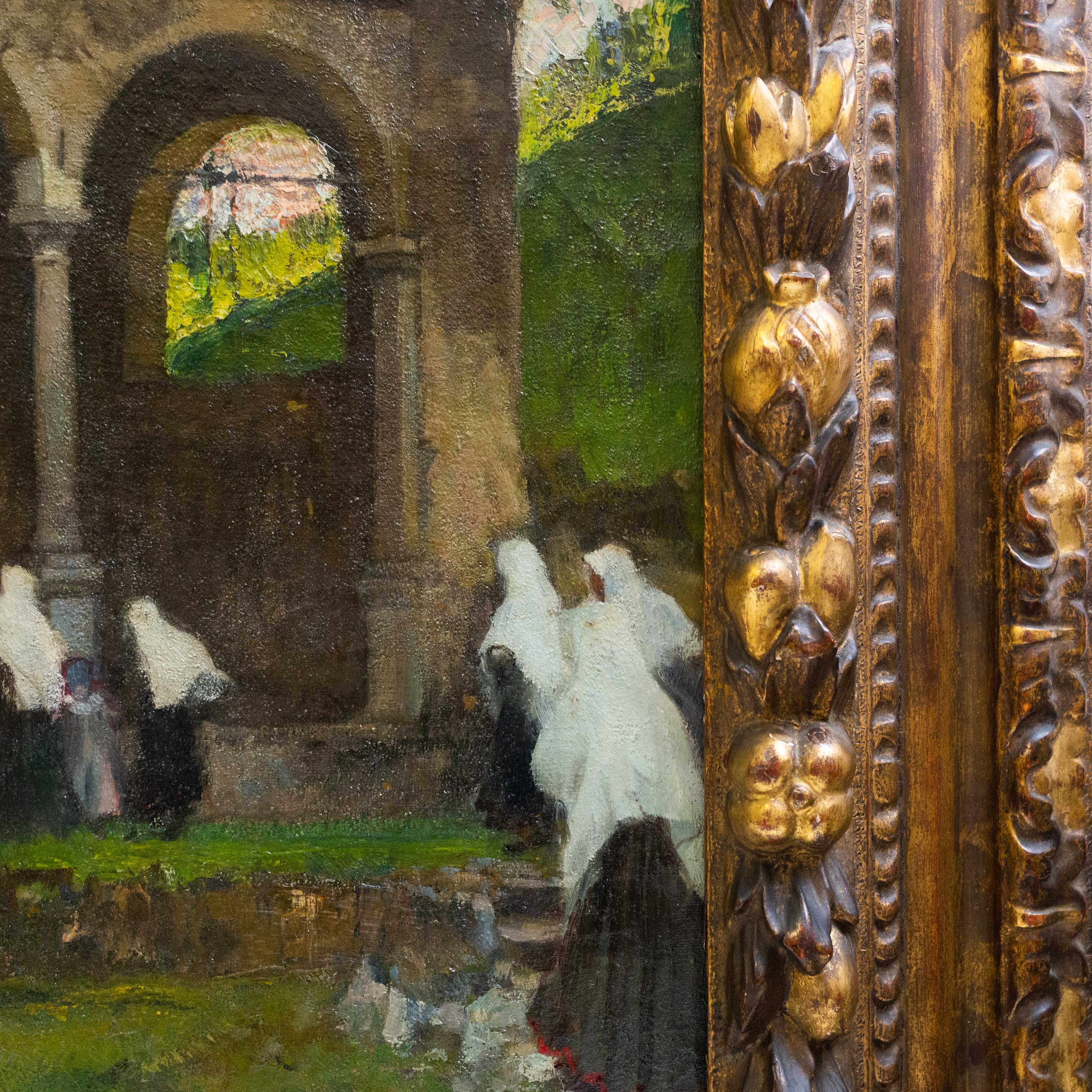 Olio su tela, di Vittorio Cavalleri, "Processione al Lago d'Orta", Fine '800