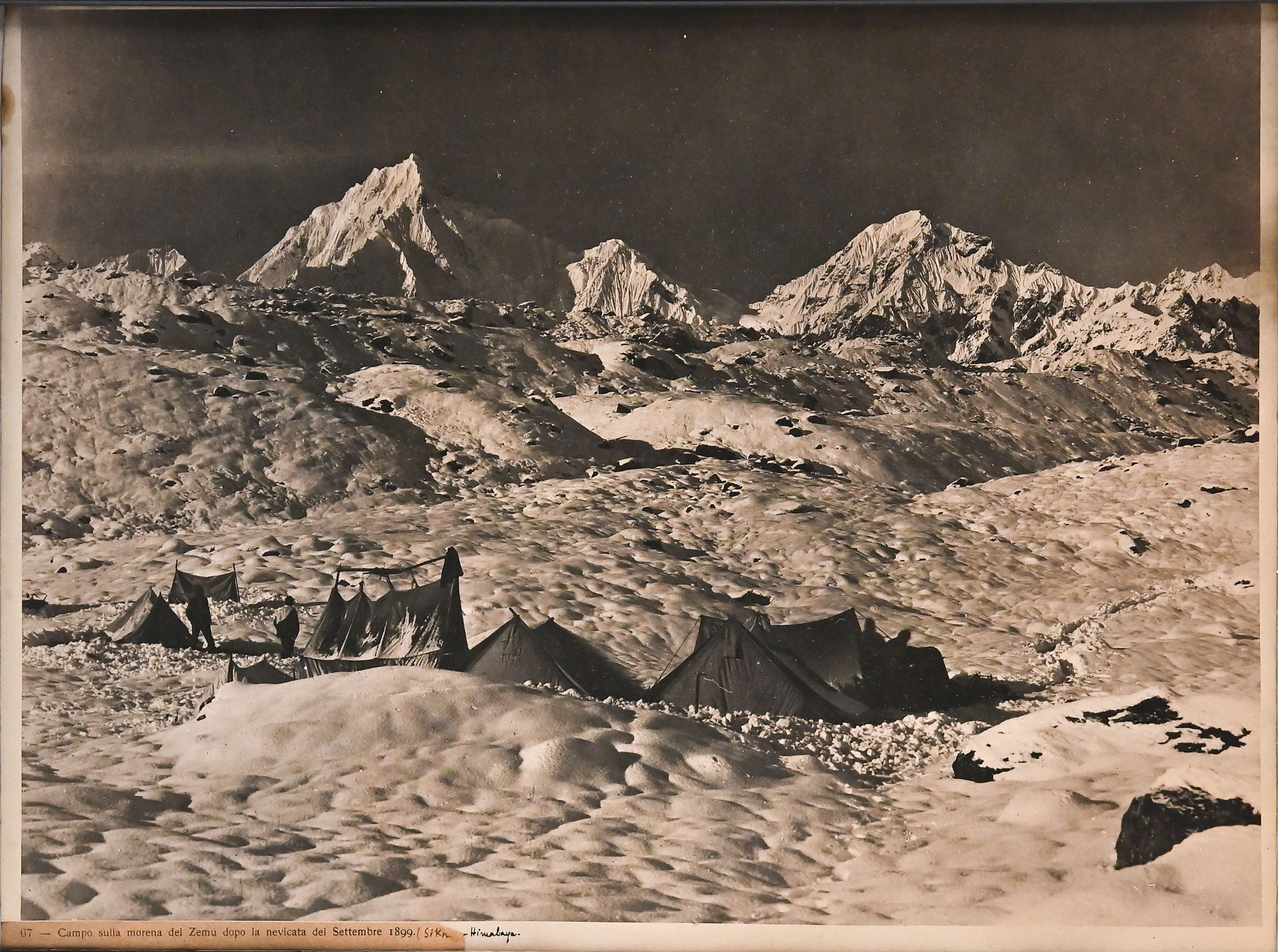 Campo sulla morena del Zemu dopo la nevicata del settembre 1899.